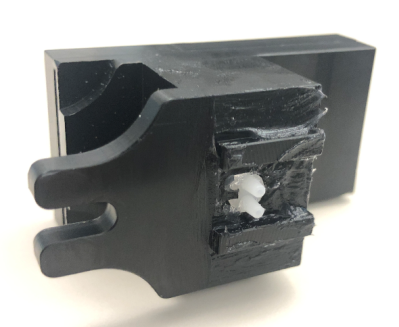 Crystals eventually build up enough to occlude the Output Queue Presence Sensor.