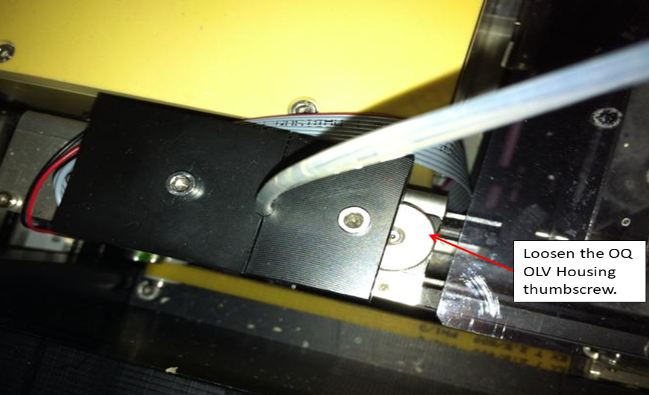 Loosen the Output Queue OLV Housing thumbscrew.