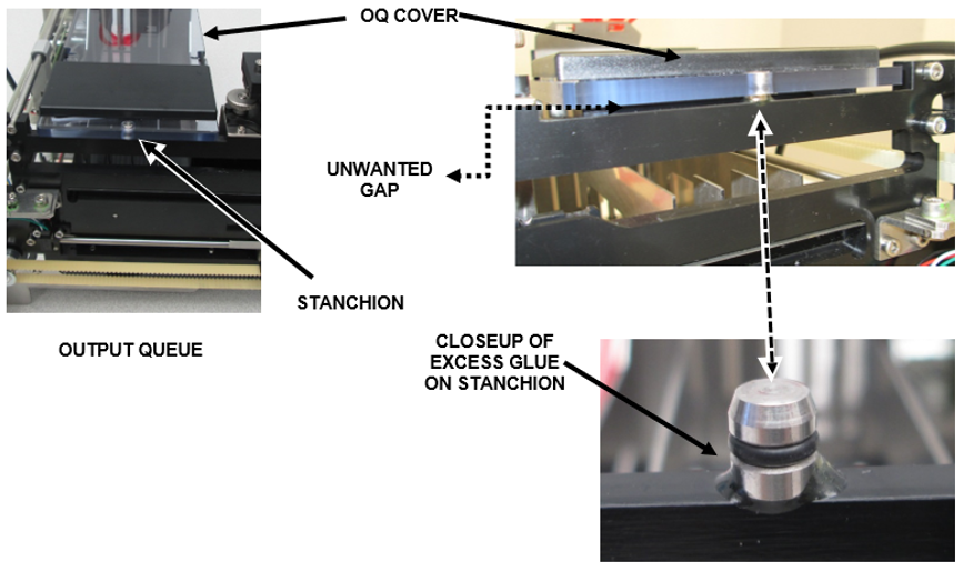 During manufacturing, some OQs have an excess of glue applied to the stanchion that holds the OQ cover. This excess glue can create a gap between the OQ Cover and the frame of the OQ (as much as 2 mm). This gap can affect MTU