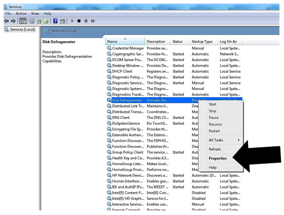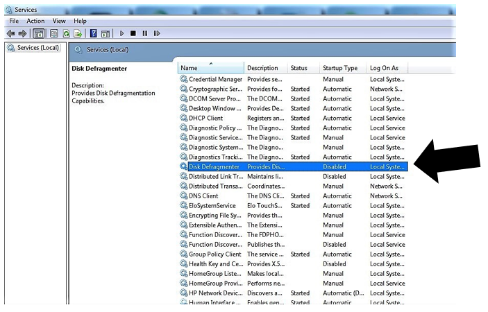 - Once Defragmentation is completed, disable the Disk Defragmentation Service: