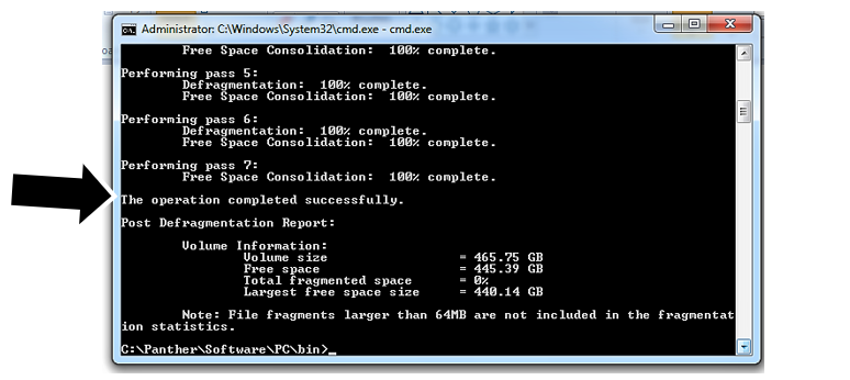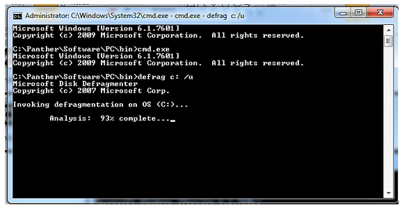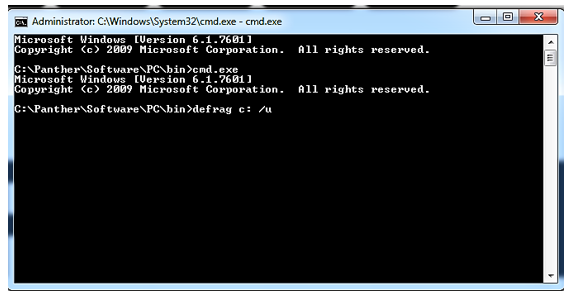- You can follow the procedures in Defragmenting the Panther System PC. Or you can run defragmentation from the already open Command Prompt window using the following steps: