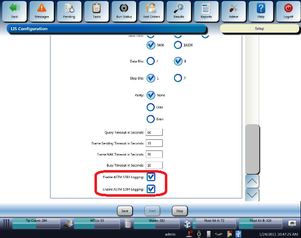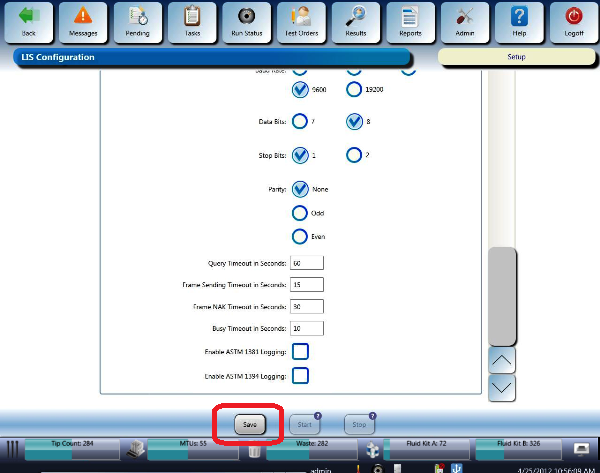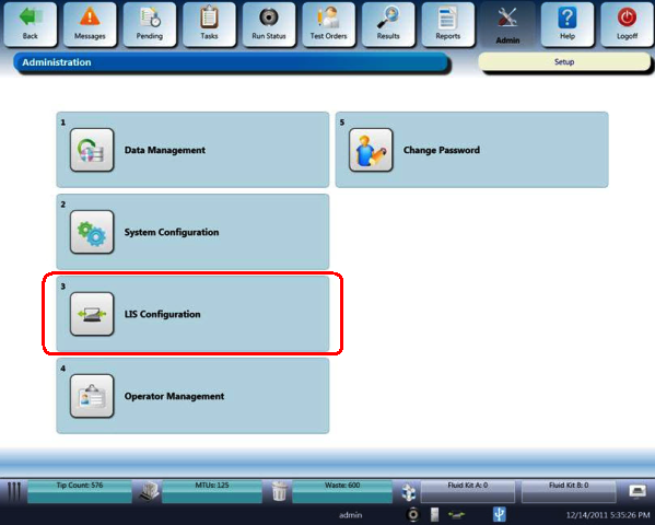 - On any Panther System screen, select the Admin button at the top of the screen.