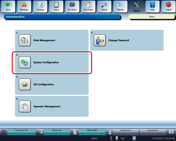 - On any Panther System screen, select the Admin button at the top of the screen.