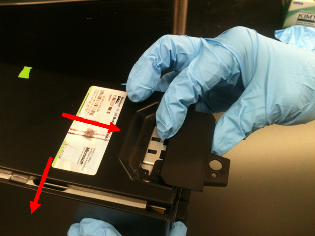 - Re-install the hard drive. Make sure the hard drive assembly tabs are properly positioned in the chassis slots.