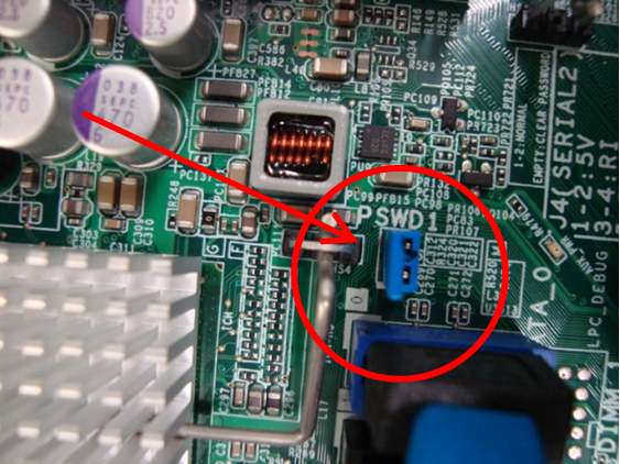 Remove the jumper labeled PSWD1. Do not discard the jumper.