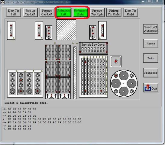- To teach a Pipettor arm, select either green button labeled Reference Left or Reference Right.