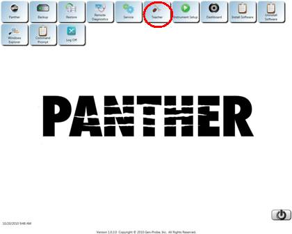 Click the Teacher button on the Panther Shield software screen to launch the Teacher Program.- Click OK.