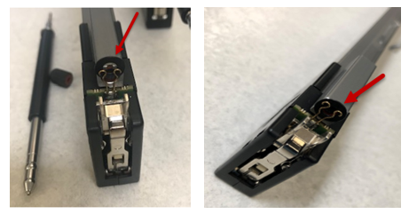 - The vertical assembly length of the DiTi and conductive washer is slightly more than the old configuration. Teaching is necessary to resolve the difference in length of the DiTi relative to the home flag and to maintain the vertical distance of the Eject Lever to the Eject locations.