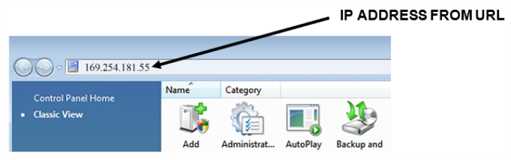 Note—If using Windows 7, select the Turn off Windows Firewall (not recommended) option for both Home/Work and Public network location settings. - From the open Windows Explorer screen (open an Explorer window if necessary), type in the