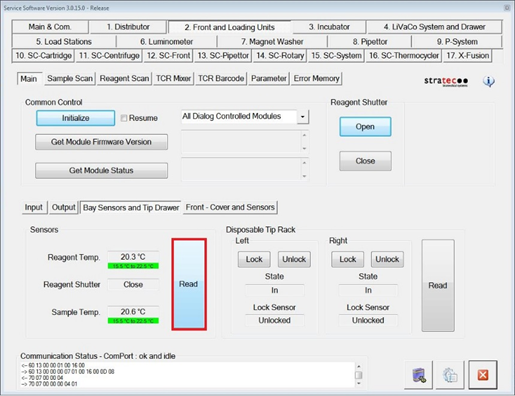 After 5 minutes, verify that Reagent and Sample Bay temperatures come into acceptable ranges (15.5°C - 22.5°C).
