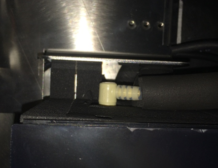 Remove the Reagent Bay cooling line tubing from the barbed interconnect fitting. (If the incorrect tubing is installed on the system this should not require much force to remove.)