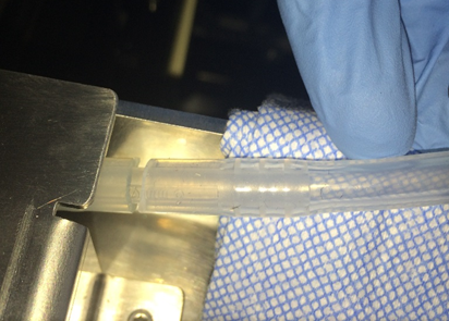 - Install the quick disconnect into the 5 mm ID silicon tubing. Verify all barbs on the barbed fitting are contained within the tubing.