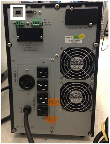 - Connect the "B" end of the USB cable to the UPS USB port shown below.