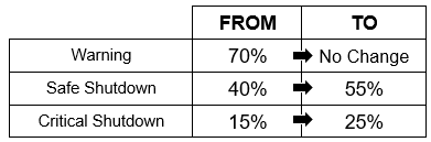 - Use the same technique to change the 15% Critical Shutdown) value to 25%.