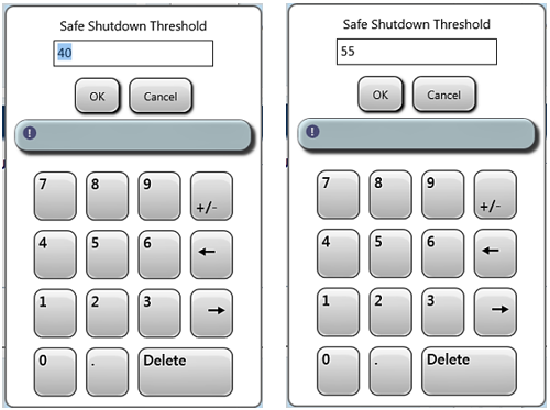 Tap or click on 40% (Safe Shutdown) and use the on screen keypad to change that value to 55%. Click OK.