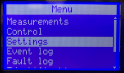 From the Main Menu, press the ↓ button to highlight Settings, then press the ⤶ button.