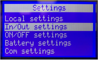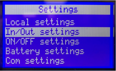 Press the ↓ button to select In/Out settings, then press the ⤶ button.