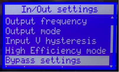 Press the ↓ button until Bypass settings is highlighted, then press the ⤶ button.