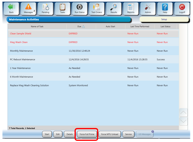 - Click on Force Full Prime again (this second prime will fail but is necessary to push the air through the lines).