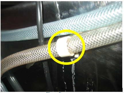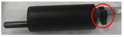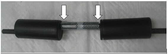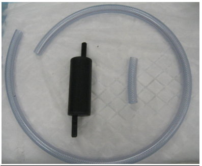 Disconnect the clear, braided tubing from the "Y" fitting inserted into the short piece of black 10 mm ID tubing from the "Y" fitting as indicated in the picture below.