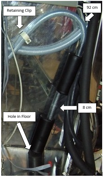 Route the 92 cm long piece of braided tubing along the rear wall, and secure it with the retaining clip as shown in the image below. Ensure the loop portion of the retaining clip is snapped into the straight position.
