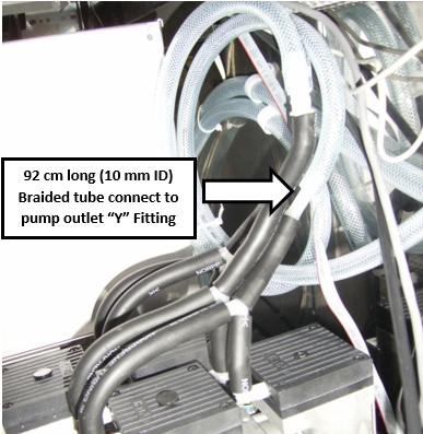 Connect the other end of the 92 cm braided tubing to the vacuum pump outlet's "Y" coupling and route the tubing as illustrated below.