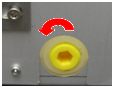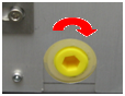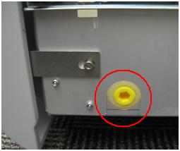Locate the coalescing drain plug on the right side of the Waste Drawer.- Place a flat tray underneath the coalescing drain plug to catch any fluid that drains out.
