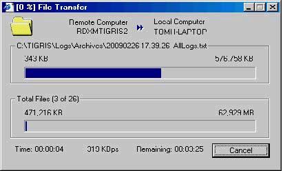 A File Transfer popup window indicates the progress of the transfer.