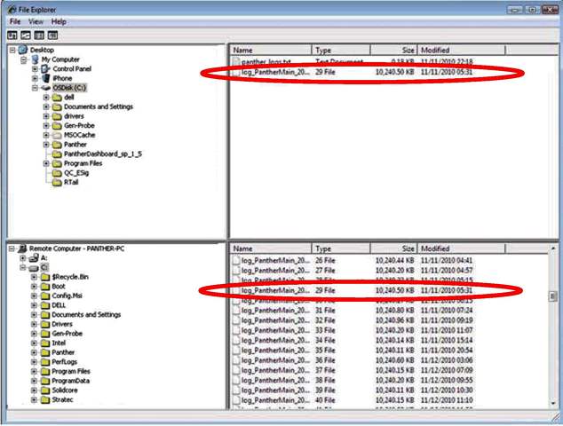 - Transfer log files from the Panther System C: drive to a folder on the FSE laptop.
