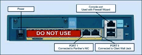 - Verify proper installation by ensuring that the green LEDs are flashing for both Firewall network connections and the Panther System PC NIC 1 Port connection.