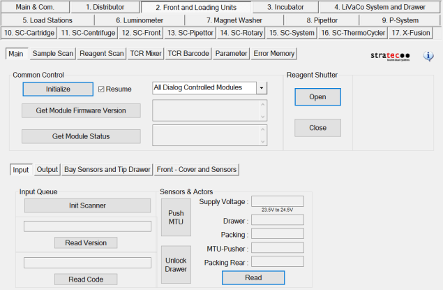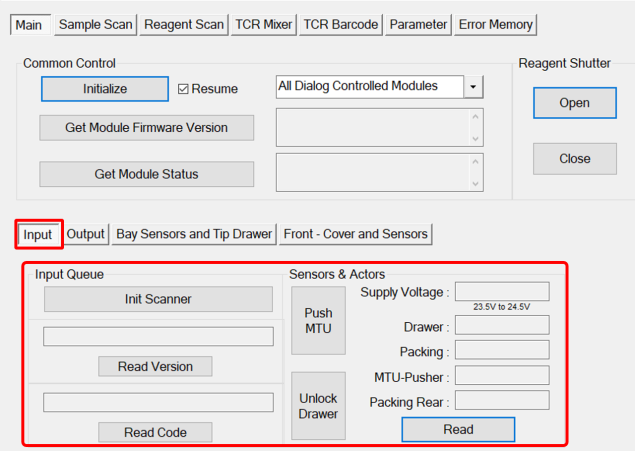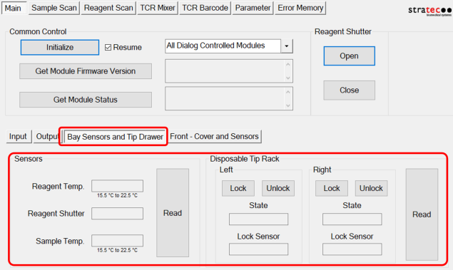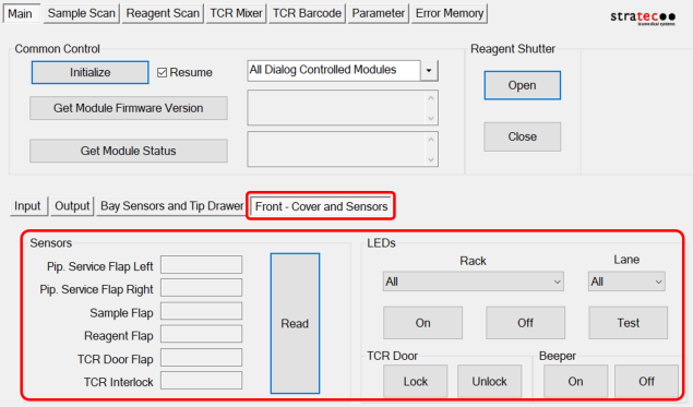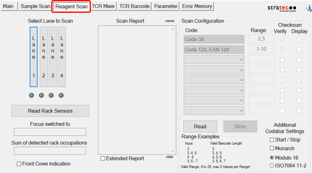 - Allows an FSE to read the Reagent Rack sensors and barcodes.