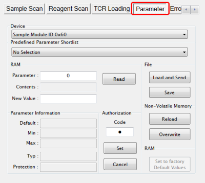 - Display any parameter value of the selected Device by entering a Parameter number and clicking the Read button.