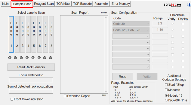 - Allows an FSE to read the Sample Rack sensors and barcodes.