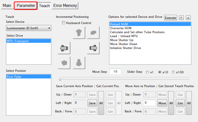 - To allow Transport Drive teaching (on the Teach tab) the Authorization Code must be set to 1. Enter 1 in the Authorization Code Field and click Set before teaching.