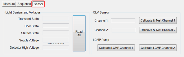 - Light Barriers and Voltages ( Click Read All button to display various voltages)