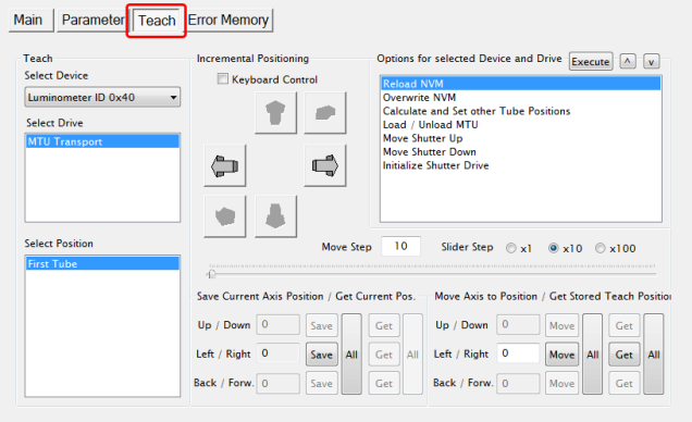 - The Teach tab is used to perform Transport Drive alignment to the incubator door.