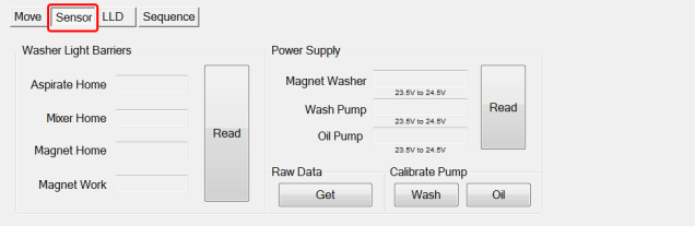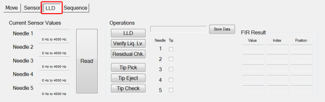 - Read (displays the LLD data for each aspirator)