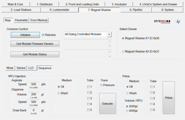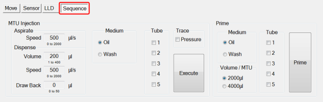 MTU Injection (runs a sequence using oil or wash aspirating and dispensing)