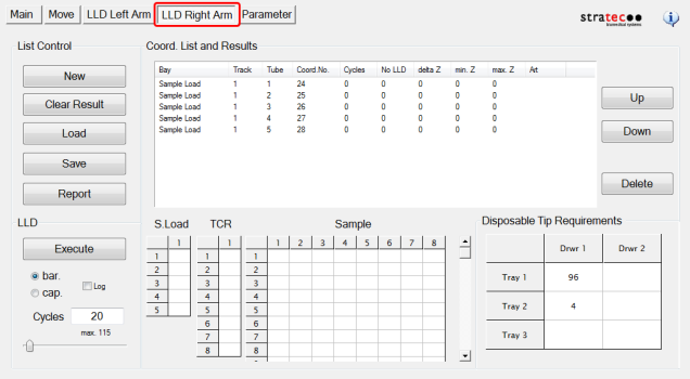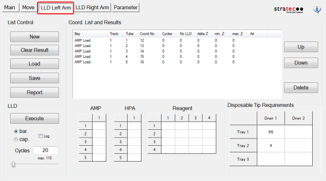 - Coord. List and Results - Displays LLD test results