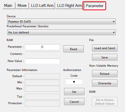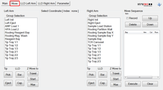 - Provides manual arm movement to various positions. It also allows the user to pick, eject tips and perform LLD in the different positions.
