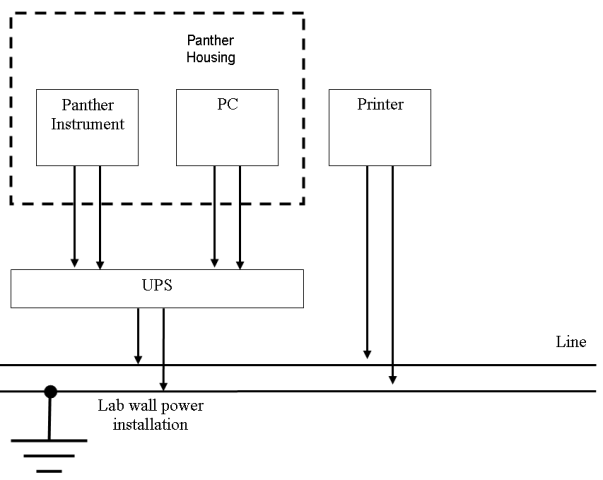 The UPS and the printer will be connected independently to the Lab main power installation outlets.