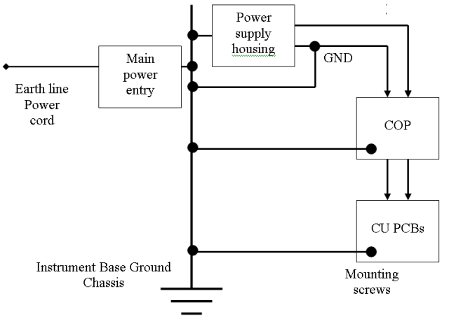 There is a common grounding scheme used throughout the system. Two separate grounds are brought to each module. The grounds are chassis and signal/power. The module controller will connect chassis ground to mounting screws used to connect the mechanical components of the module to chassis ground. Each module will create a single ground point for signal and power. All analog measurements used to run the module will be made with respect to the modules single point ground.